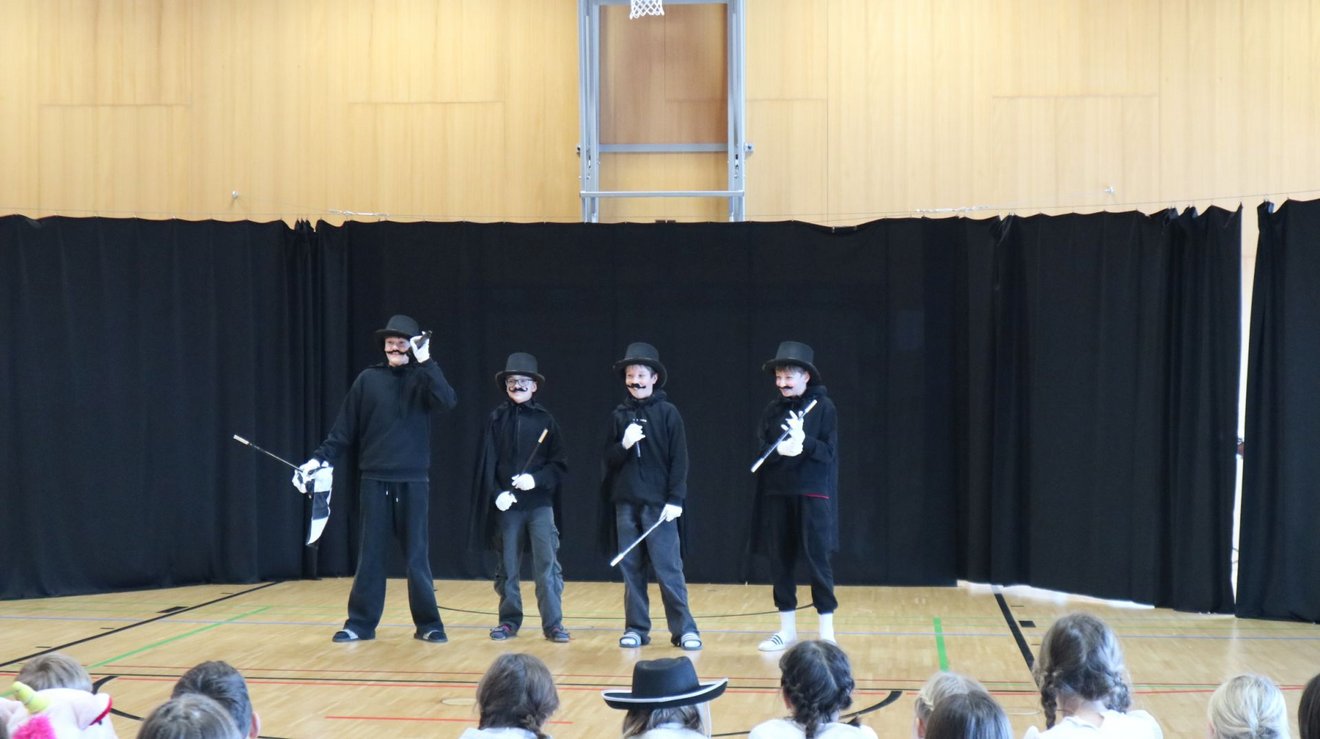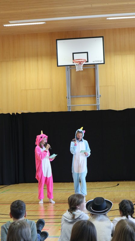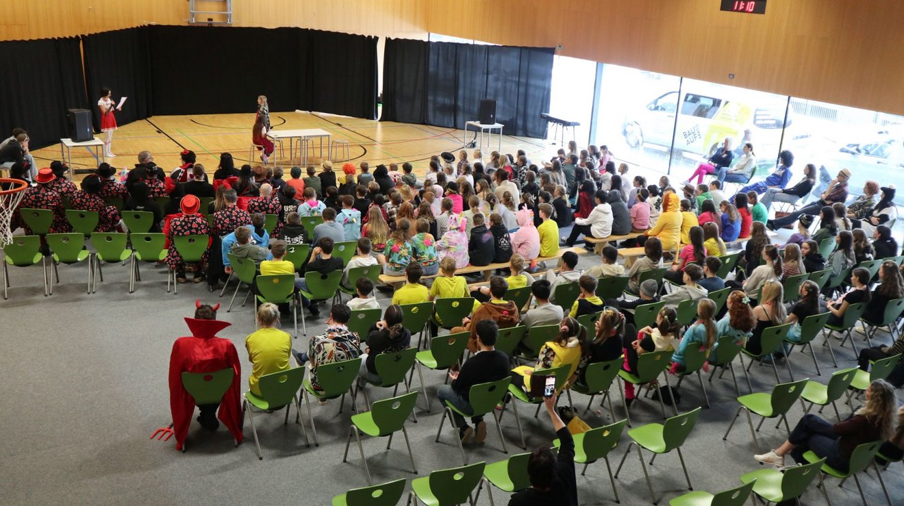 Besonders erfreulich war, dass diesmal nicht nur viele Eltern als Gäste mitfeierten, sondern auch die „Dorer Fasnatsbüttel“ vorbeischauten und die Kinder mit Süßigkeiten überraschten. Gemeinsam erlebten alle einen Vormittag voller Freude, Gemeinschaft und unvergesslicher Momente. Die Faschingsdarbietungen zeigten wieder, wie viel Kreativität in den Schüler:innen steckt und wie sehr solche Feste das Miteinander stärken.