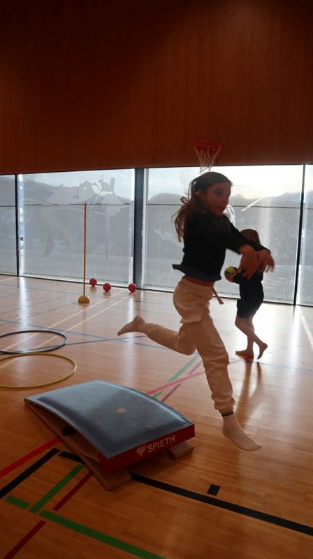 Dort konnten sich die Schülerinnen und Schüler so richtig austoben: Springen, Klettern, Saltos ausprobieren – für jeden war etwas dabei.