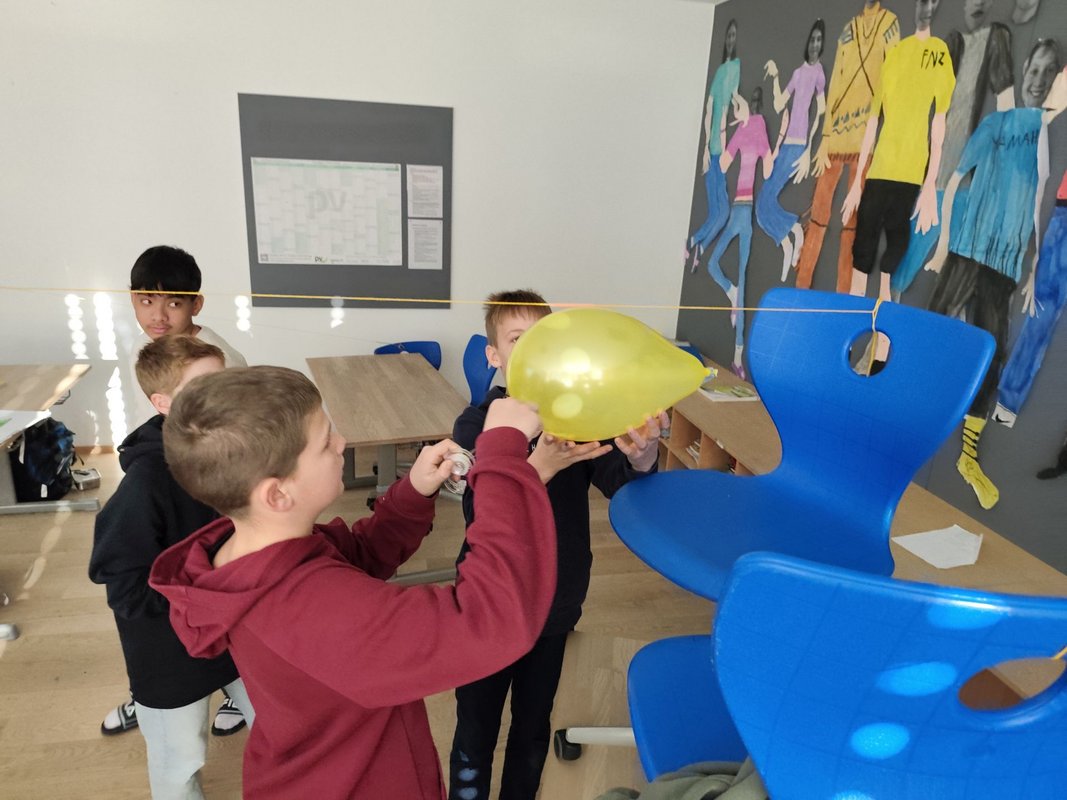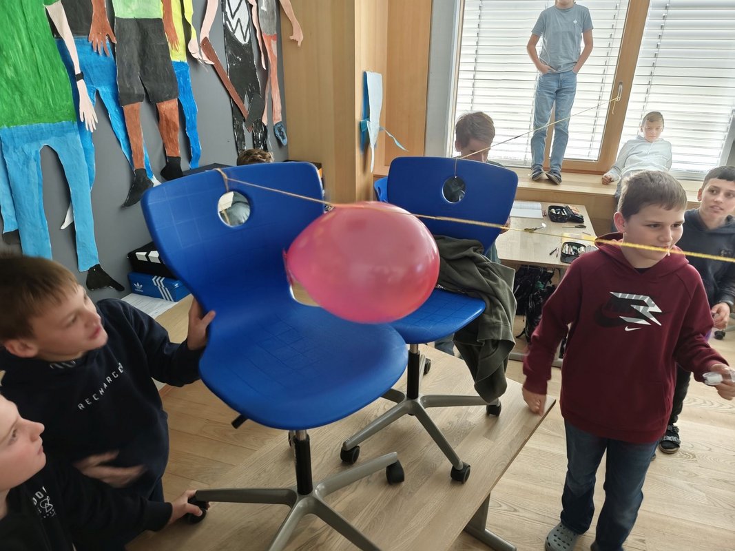 Im Physikunterricht der 3. Klassen konnten die SchülerInnen das Rückstoßprinzip untersuchen: